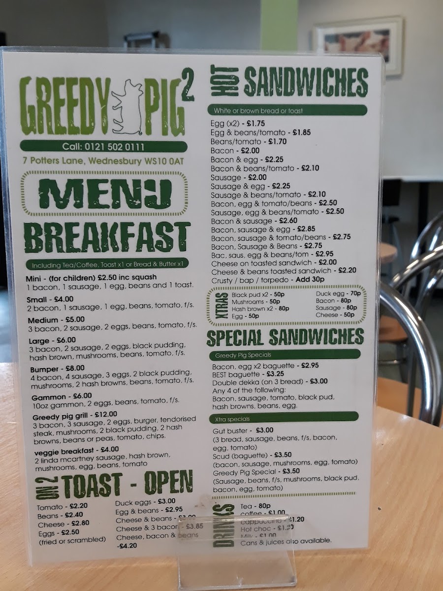 Greedy Pigs 2 Cafe Menu